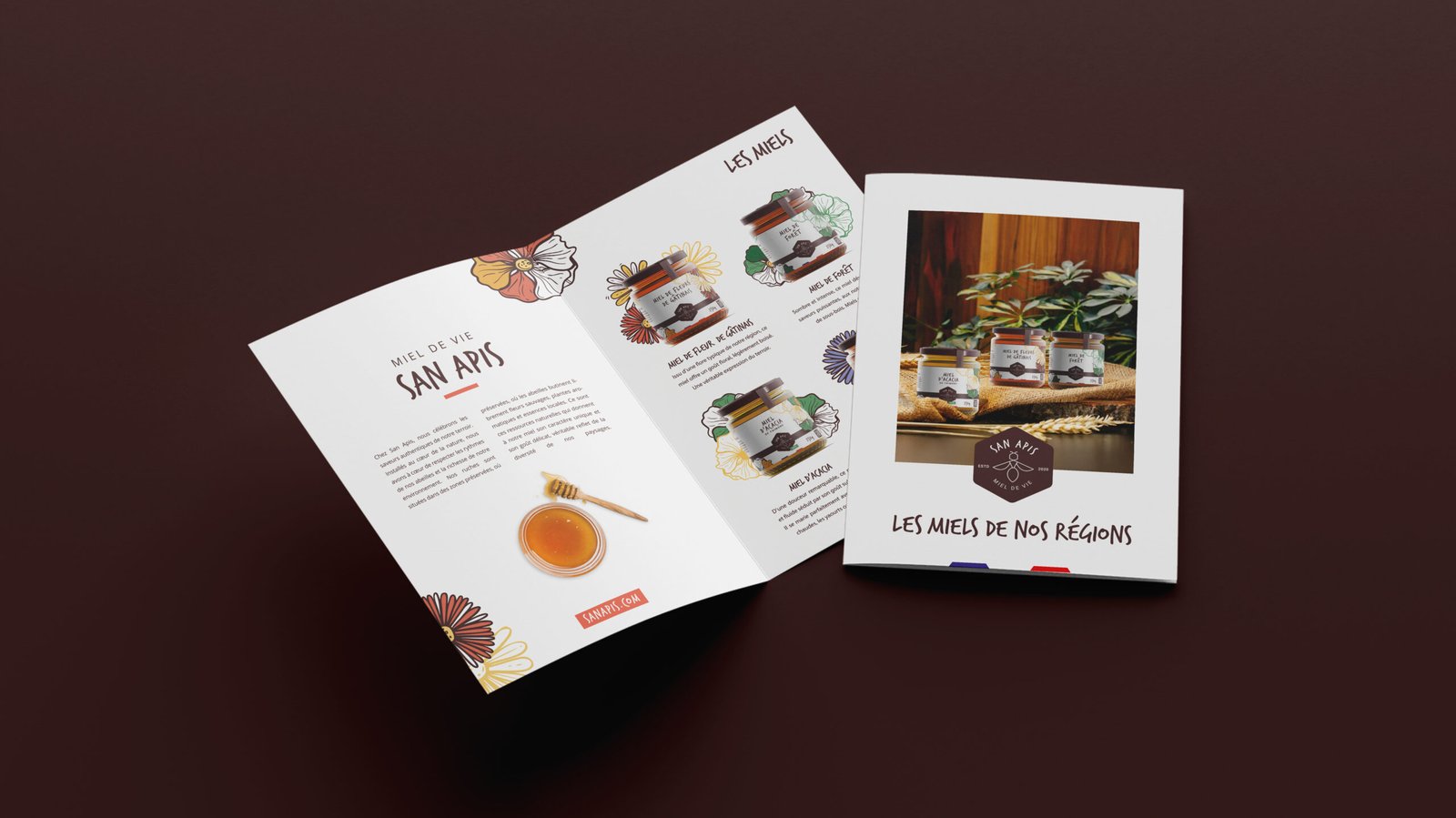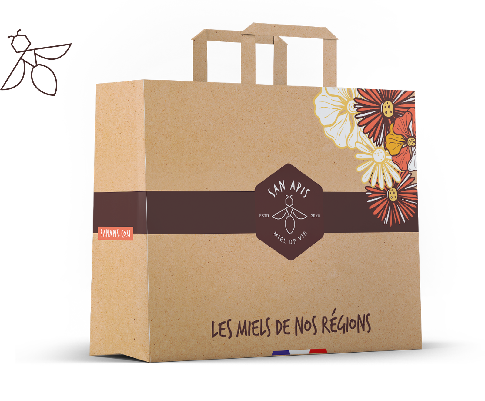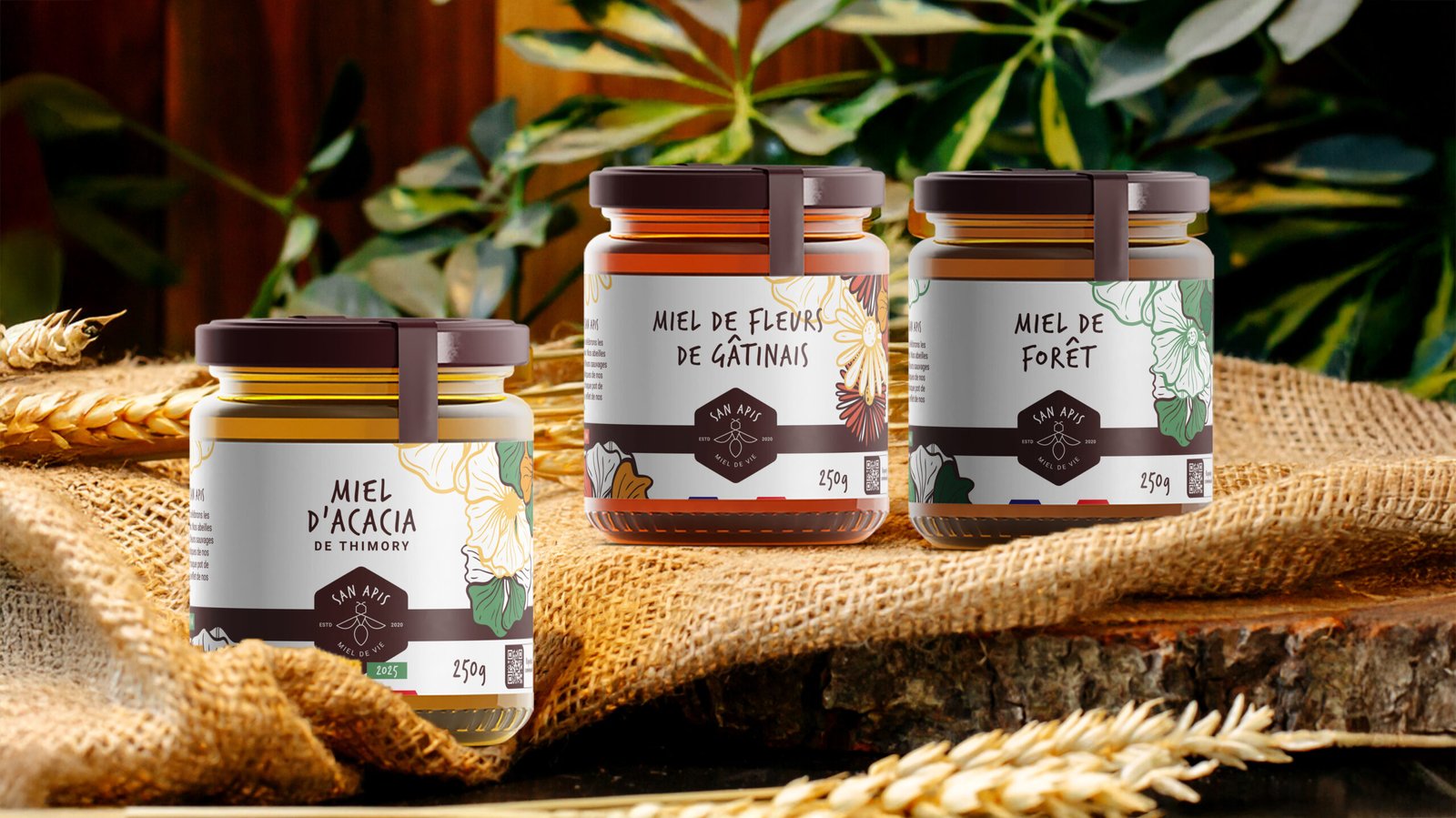 San Apis est une marque de miel artisanal qui valorise le savoir-faire local et la diversité florale. L’identité visuelle s’inspire des fleurs mellifères, avec une palette colorée et naturelle qui évoque la richesse du terroir. L’univers graphique a été décliné sur plusieurs supports print et digitaux afin d’installer une image de marque cohérente, chaleureuse et facilement identifiable.